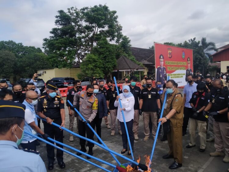 Narkoba, minuman keras termasuk sabu dimusnahkan dan dibakar menggunkan mesin insenerator dan dilarutkan cairan asam sulfat. ***