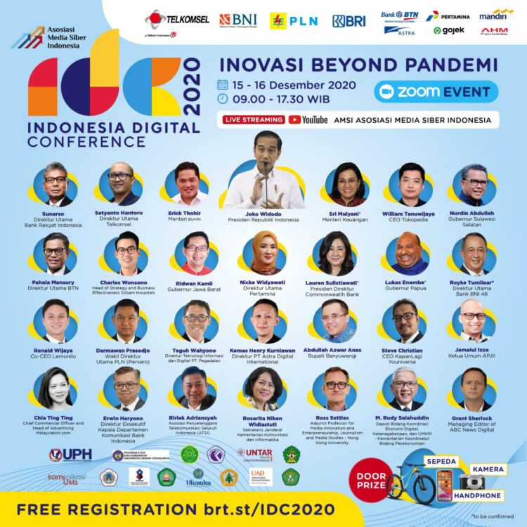 KAPOL.ID – Sebanyak 3.500 peserta telah mendaftar untuk mengikuti Indonesia Digital Conference (IDC) 2020 secara virtual. Kegiatan yang diselenggarakan Asosiasi Media Siber Indonesia (AMSI) ini akan berlangsung selama dua hari, Selasa-Rabu, 15-16 Desember. Presiden Joko Widodo dijadwalkan akan membuka konferensi ini.