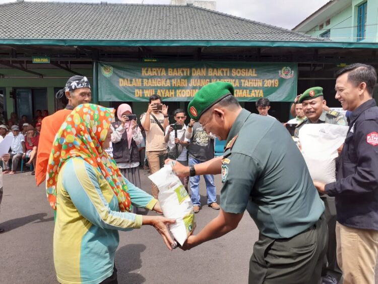 “Paket beras 5 kg ini yang di berikan kepada masyarakat kurang mampu di Kota dan Kabupaten Tasikmalaya. Sekaligus pula dalam rangka memperingati hari juang kartika,” ujar Dandim 0612 Tasikmalaya, Letkol Inf Imam Wicaksana.