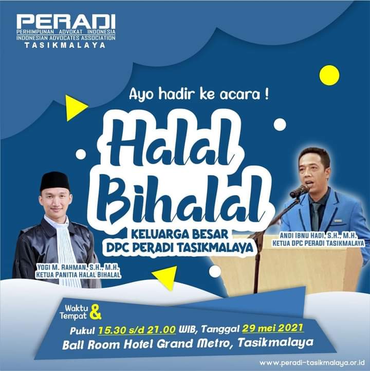 Ratusan Advokat yang tergabung dalam Perhimpunan Advokat Indonesia (Peradi) Cabang Tasikmalaya akan menggelar Halal Bil Halal pada, Sabtu (29/05/2021).