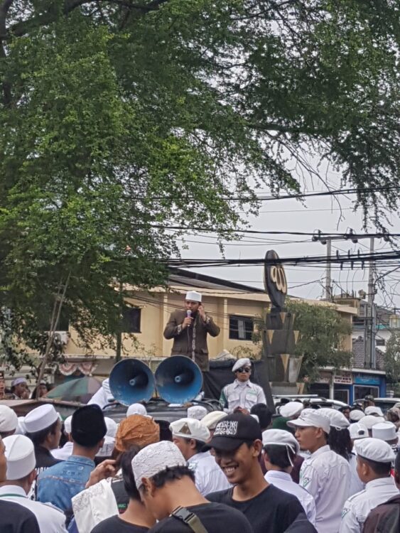 Duet koordinator lapangan, Ustaz Kamal Arda Birli dan Ustaz Dadang Supriatna kompak memandu sedikitnya 300 massa aksi. Aksi itu pun tampak diikuti DPW Front Pembela Islam dan Ormas Garis Kabupaten Cianjur Pesantren Almusyarrofah.