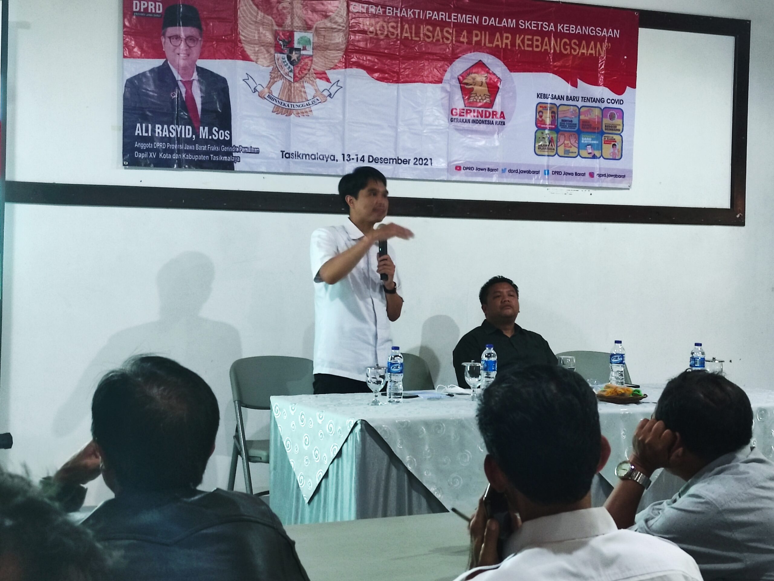 Sosialisasi empat pilar kebangsaan itu digelar di aula Rumah Makan Jembar Kota Tasikmalaya di Jalan Letnan Harun Rabu (15/12/2021).
