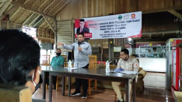 Anggota DPRD Jabar, Ali Rasyid saat reses di Rumah Makan Saung Hera Kecamatan Tamansari. Ali Rasyid menyebutkan di sekolah Negeri tidak boleh ada pungutan yang memberatkan Orang Tua
