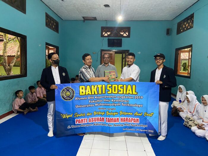 Alumni D3 Keperawatan angkatan 2019 Fakultas Ilmu Kesehatan Universitas Muhammadiyah Tasikmalaya (Umtas) santuni anak yatim, Senin (29/8/2022).