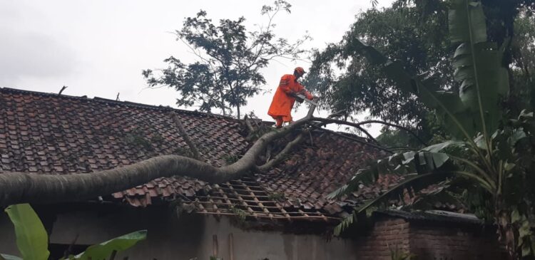 Akibatnya satu rumah tertimpa pohon, dan sebuah garasi mengalami rusak bagian atap.