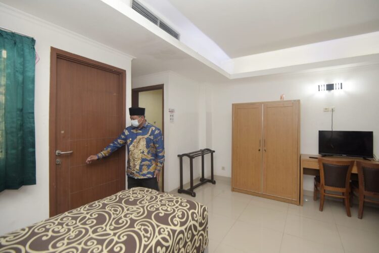 “Kapasitas 210 tempat tidur dari 105 kamar. Penyesuaian setiap kamar terdiri dua bed, juga ada cadangan (ekstra bed), ada tv, kulkas, kamar mandi di dalam, dan sudah steril, termasuk pendingin ruangan,” imbuhnya.