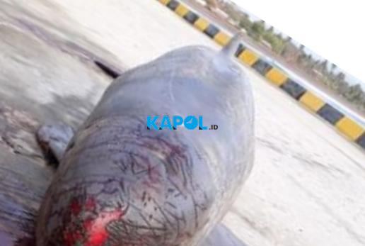 Terlihat, ikan tersebut terluka bekas sayatan di tubuhnya dan ikan besar tersebut diduga jenis lumba-lumba.