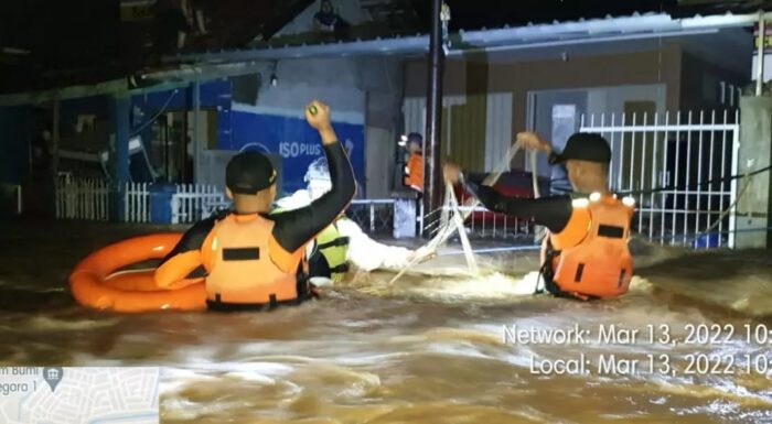 KAPOL.ID – Tim SAR Gabungan mengevakuasi 23 warga terdampak banjir di Rancaekek Kulon Kab Bandung, Senin 14 Maret 2022.