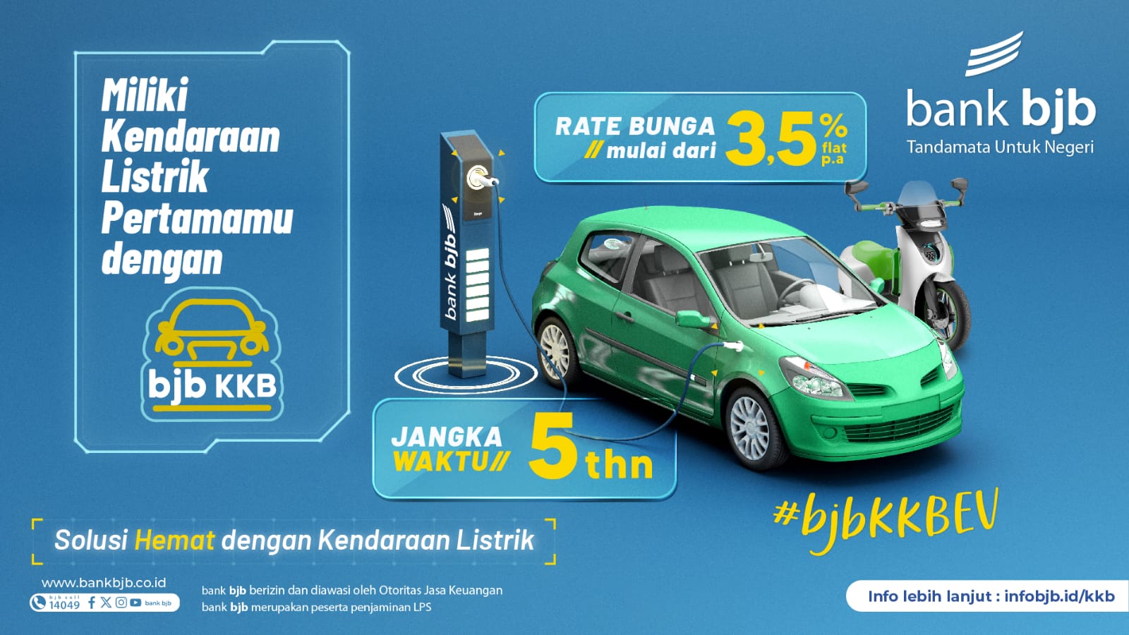 Dalam rangka mendukung peningkatan penggunaan kendaraan listrik, Bank bjb menawarkan Produk bjb Kredit Kendaraan Bermotor (KKB) Kendaraan Listrik.