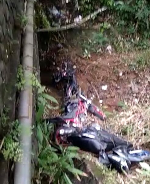 Tak hanya babak belur, kedua motornya digotong warga dan diduga dilempar ke sebuah parit di tepi jalan.