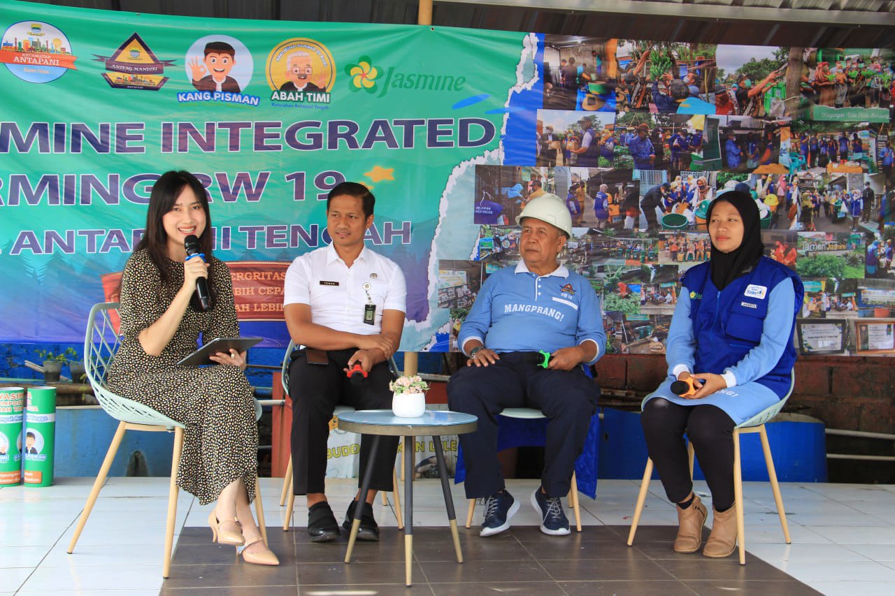 “Jasmine Integrated Farming ini sudah berjalan sejak tahun 2019. Awalnya itu kita edukasi dan sosialisasi. Kita berkeliling, bagaimana caranya untuk memilah sampah. Saat ini 10 persen residunya masih buang ke TPS. Kita ada kontribusi. 90 persen mengolah di sini,” kata Ketua RW 19, Doddy Iryana Memed pada kegiatan Bandung Menjawab, Rabu Juni 2023.