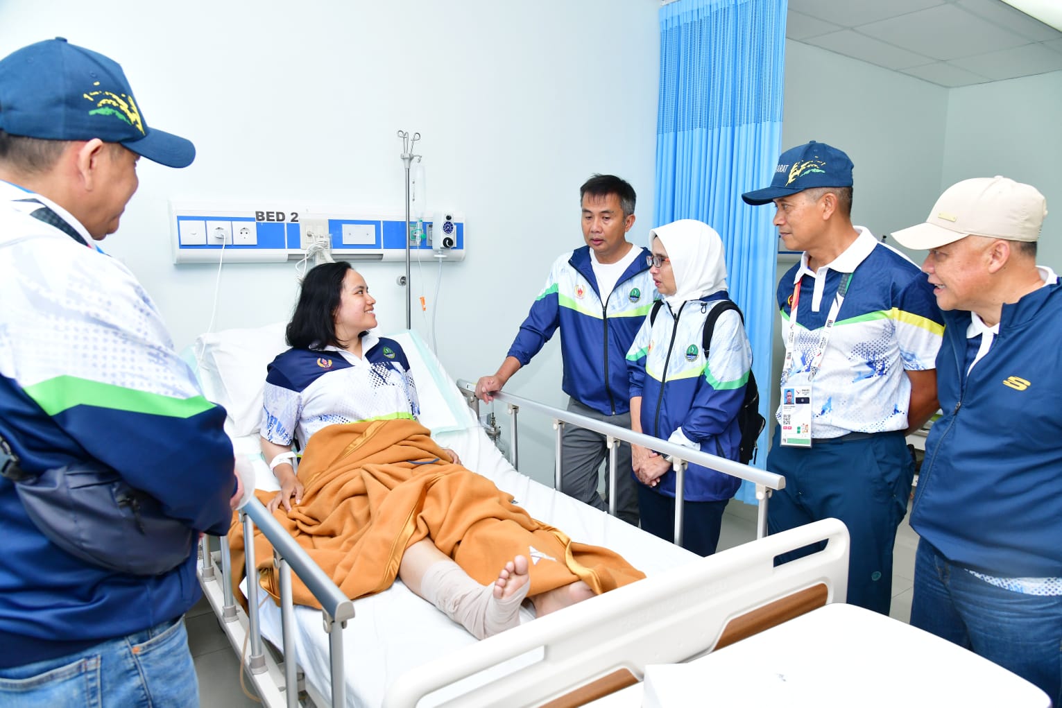 KAPOL.ID — Penjabat Gubernur Jawa Barat Bey Machmudin mengunjungi atlet terjun payung asal Jabar Yazella Agustin di RSUD Zaenul Abidin, Kota Banda Aceh, Aceh, Selasa (10/9/2024).