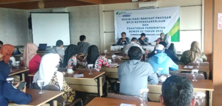 KAPOL.ID – Badan Penyelenggara Jaminan Sosial Tenaga Kerja (BP Jamsostek) Kantor cabang Sumedang menggelar sosialisasi kenaikan manfaat program Jaminan Kecelakaan Kerja (JKK) dan Jaminan Kematian (JKM).