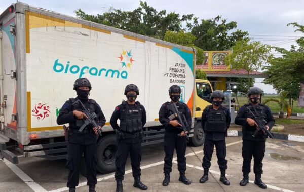 KAPOL.ID – Satuan Brimob Polda Jabar Detasemen Gegana melaksanakan pengawalan Vaksin dari PT. Biofarma.