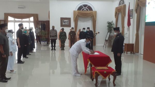 Terpantau, pelantikan dan pengambilan sumpah janji jabatan dilaksanakan secara simbolis kepada beberapa orang perwakilan dan sisanya secara virtual melalui zoom meeting di tempat masing-masing.