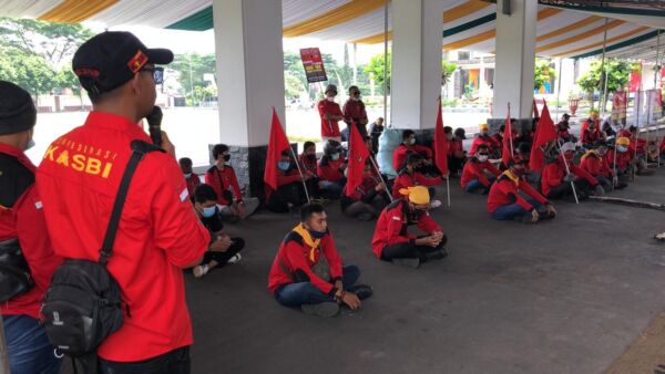 Kongres Aliansi Serikat Buruh Indonesia (KASBI) Tasikmalaya mengadu ke Pemkot Tasikmalaya, Kamis (14/10/2021).