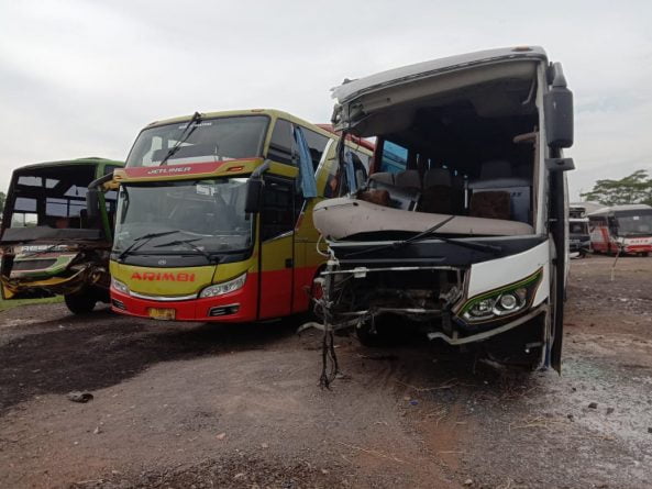 Masuk ke jalur arah berlawanan “jalur B” bertabrakan dengan Bus PO Arimbi Jaya Agung No. Pol. : B-7168-CGA dikemudikan Rohman yang datang dari arah berlawanan.