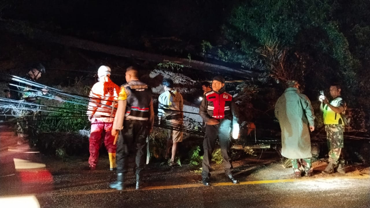 KAPOL.ID – Jalur utama Bandung -Sumedang, tepatnya di Dusun Jelekong, Desa Cigendel, Kecamatan Pamulihan, sempat lumpuh total pada Kamis (25/12/2025) sore. Hujan lebat disertai angin kencang memicu longsoran tanah dan tumbangnya sejumlah pohon besar yang menutup badan jalan.