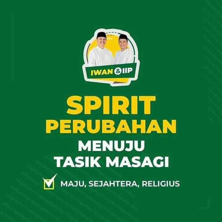 Spirit Perubahan Menuju Tasik Masagi. Sementara itu, caption berikutnya berorientasi pada klausa Spirit Perubahan Menuju Tasik Masagi sebagai judul. Subjudul caption adalah akronim Masagi, yaitu Maju, Sejahtera, dan Religius. Isi caption menginformasikan figure paslon dengan kata penjelas WANI sebagai akronim nama paslon. Penutup caption , ada penegasan ulang H. Iwan Saputra dan H. Iip Miftahul Paoz.
