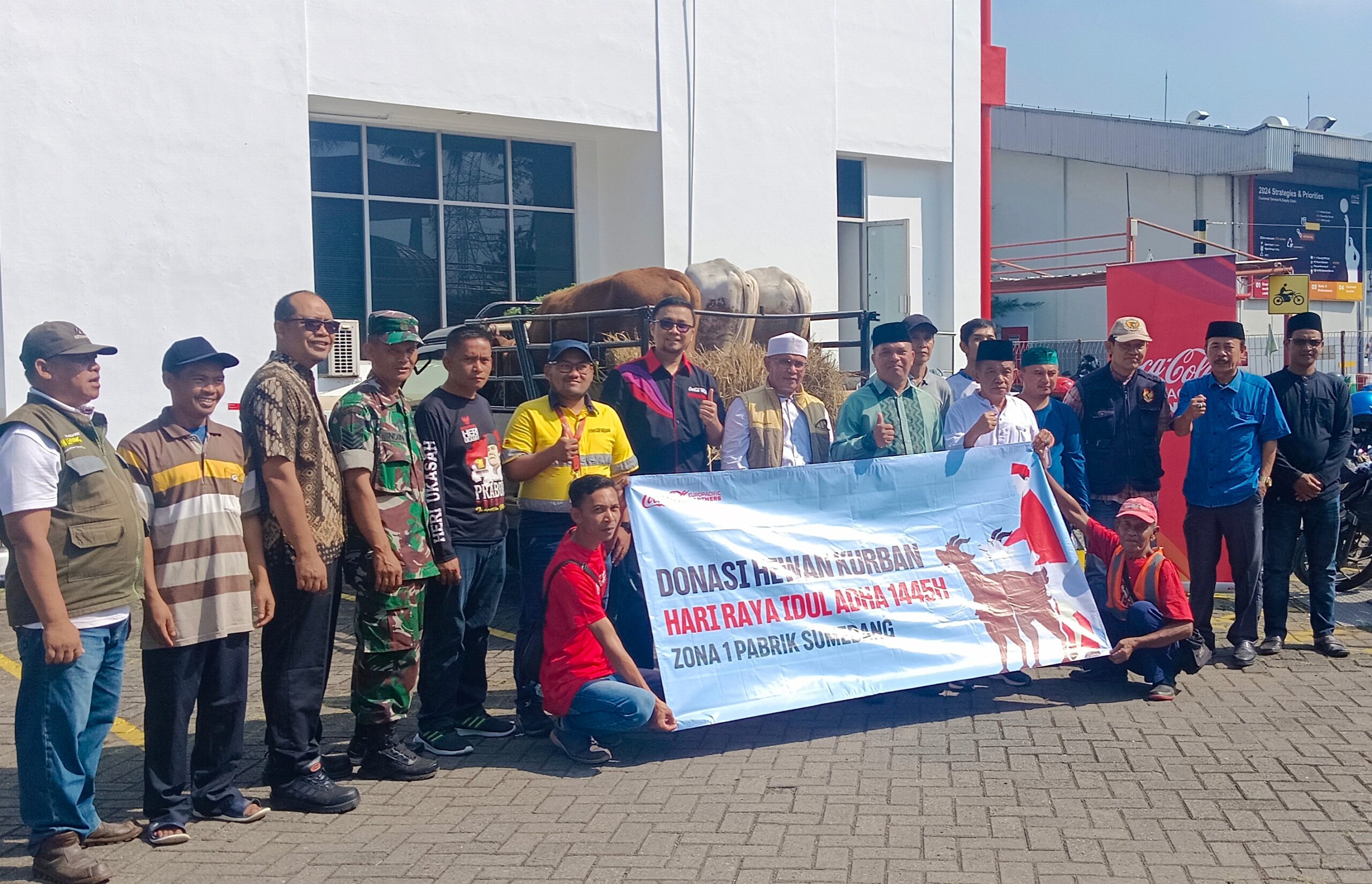 KAPOL.ID — Penyerahan hewan kurban kepada warga sekitar fasilitas Coca-Cola Europacific Partners Indonesia di Sumedang.