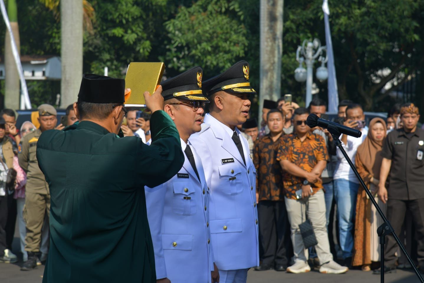 KAPOL.ID – Gubernur Jawa Barat Dedi Mulyadi secara resmi melantik Cecep Nurul Yakin dan Asep Sopari Al Ayubi sebagai Bupati dan Wakil Bupati Tasikmalaya masa jabatan 2025–2030, hasil Pemilihan Kepala Daerah Serentak 2024, di Gedung Pakuan, Kota Bandung, Rabu (4/5/2025)