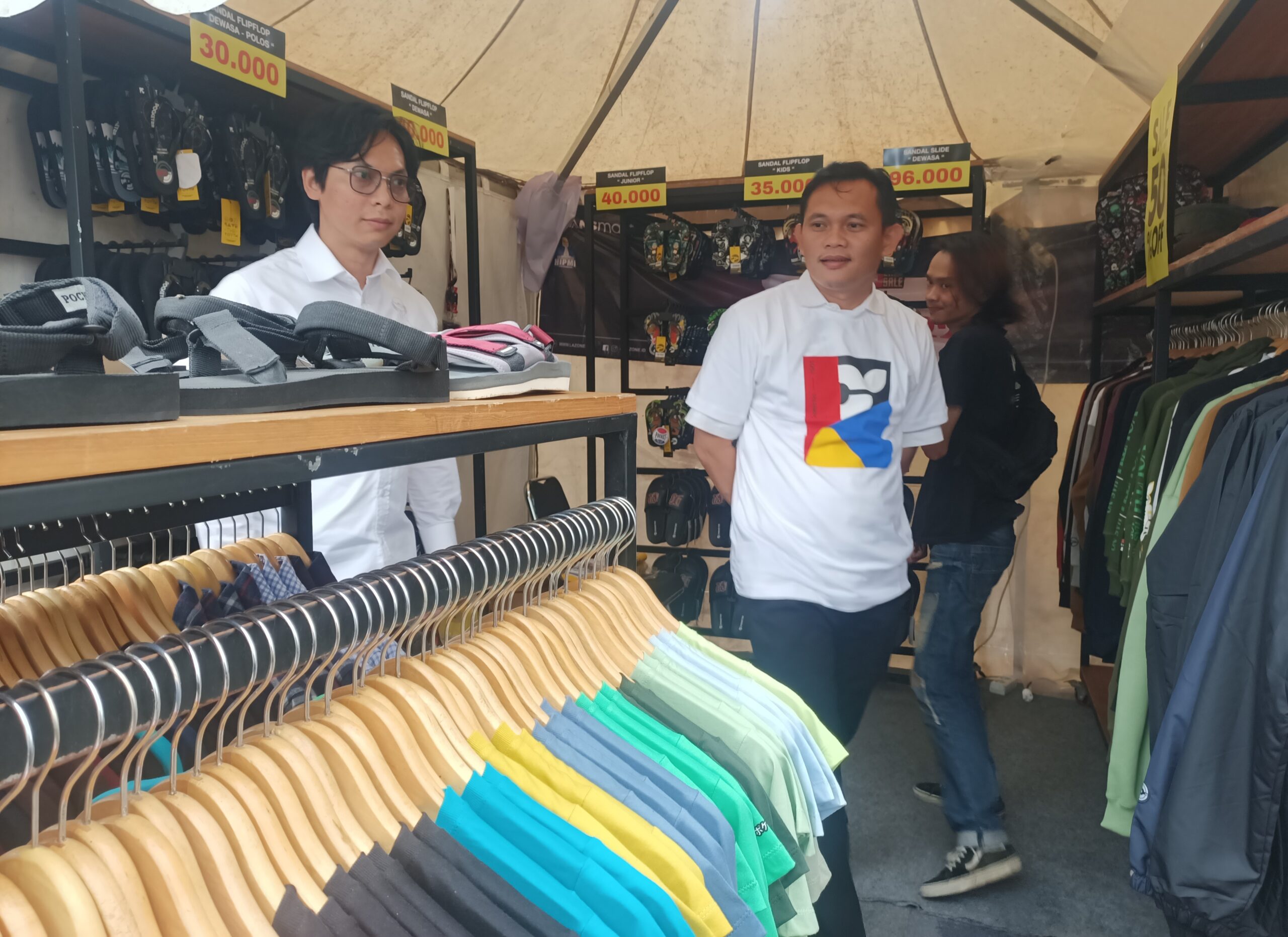 “Setidaknya lebih dari 40 brand clothing ternama yang ikut bergabung. Terdiri dari produk kaos, sweater, rompi, jaket, sendal dan lainnya.”