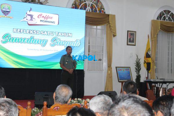 “Satu tahun Sumedang Simpati dibawah kepemimpinan Bupati dan Wakil Bupati Sumedang Dony Ahmad Munir dan Erwan Setiawan, hasilnya luar biasa,” katanya pada acara Coffee Morning Refleksi Satu Tahun Simpati yang di Aula Gedung Negara Jl. Prabu Geusan Ulun No. 36 Kel. Regol wetan Kec. Sumedang Selatan, Jumat (20/09/2019).