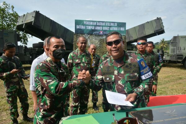 Komandan Kodiklatad Letjen TNI AM. Putranto, S.Sos. meresmikan Daerah Stelling 25 Baterai Tempur Armed Roket Astros II MK 6 di daerah latihan Puslatpur Kodiklatad Baturaja, Selasa (16/11/2021)