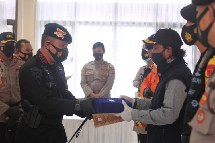 KAPOL.ID – Komandan Satuan Brimob Polda Jabar Kombes Pol. Yuri Karsono, S.I.K, memberikan penghargaan kepada para relawan SAR pada pelaksanaan tugas kemanusiaan Search And Rescue (SAR) bencana tanah longsor di Desa Cihanjuang Kec. Cimanggung, Jumat (22/01/2021).