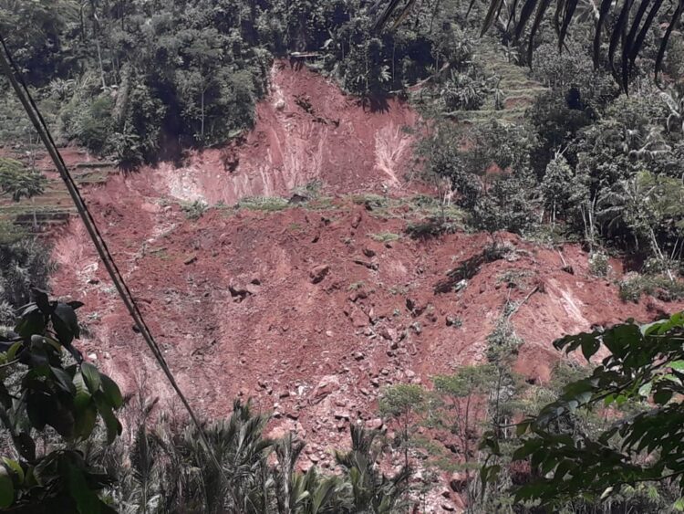 “Hujan sejak malam sampai pagi cukup besar. Dinding lahan persawahan seluas 1 Ha longsor. Lalu memutus saluran irigasi Citerus yang menghubungkan dua Desa,” ujar Danramil 1221/Taraju Kapten Czi Rohadi.
