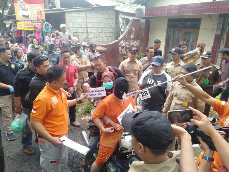 Rekonstruksi pembunuhan Siswi SMPN 6 yang digelar Polres Tasikmalaya Kota masih berjalan di rumah kosong di Jalan Laswi Kota Tasikmalaya, Kamis (12/3/2020) pagi. Pemeran DS, Sinta (23) gugup bukan main. Terutama saat adegan pencekikan leher yang membuat korban kehilangan nafas.