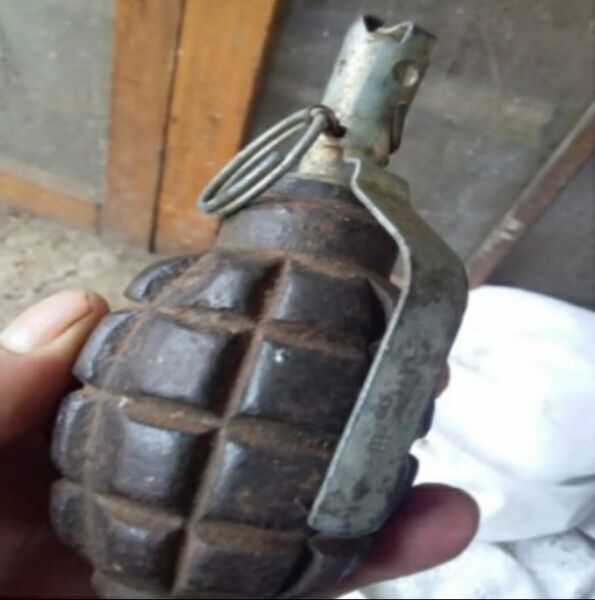 KAPOL.ID – Sebuah granat berbentuk nanas ditemukan warga saat membersihkan samah, Selasa (4/2/2020). Asep, warga Dusun Kaum Desa Jatisari, Kecamatan Tanjungsari curiga seusai operasi bersih lingkungan.