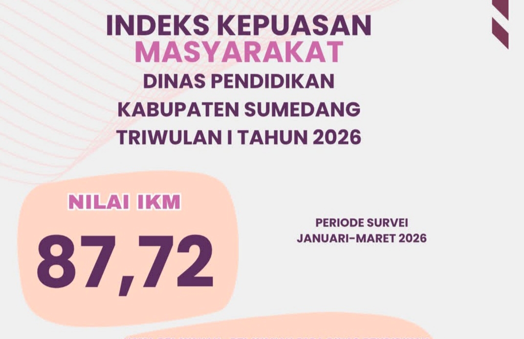 SUMEDANG, KAPOL.ID – Dinas Pendidikan (Disdik) Kabupaten Sumedang resmi merilis laporan Indeks Kepuasan Masyarakat (IKM) untuk periode Triwulan I tahun 2026. Hasilnya, instansi yang digawangi oleh pelayanan sektor pendidikan ini berhasil mencatatkan rapor hijau dengan nilai indeks mencapai 87,72.
