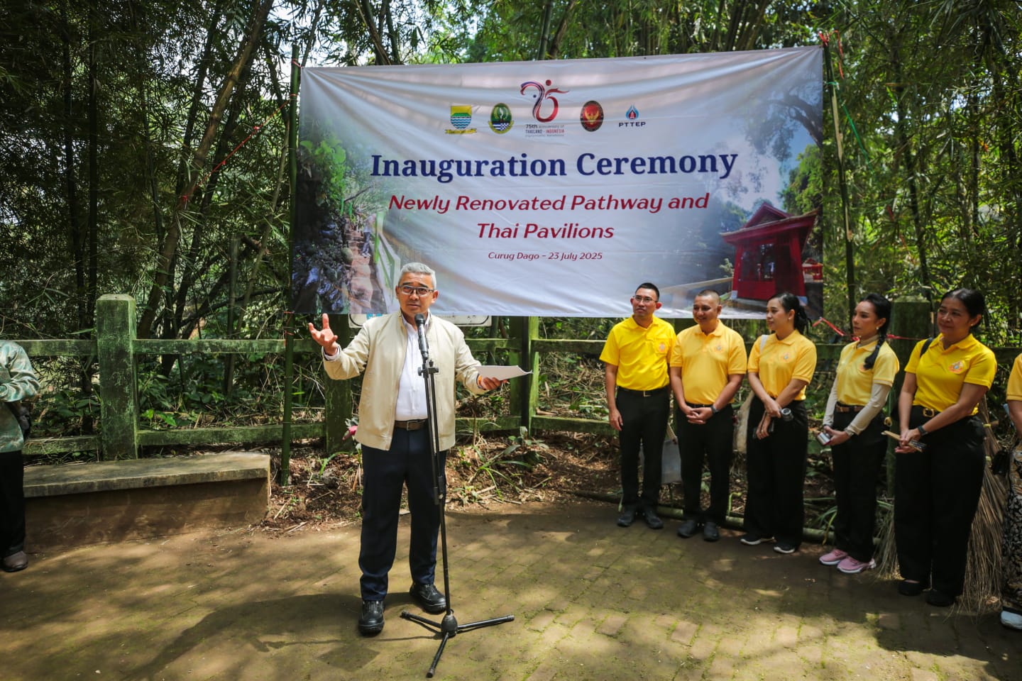 Duta Besar Thailand untuk Indonesia, Mr. Prapan Disyatat, dalam sambutannya menyampaikan, Paviliun Thailand di Curug Dago menyimpan nilai sejarah yang sangat penting. Di paviliun tersebut terdapat dua batu besar yang menjadi saksi kunjungan Raja Thailand ke Nusantara.