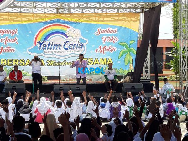 Foto | Kak Bimo saat menghibur 1000 anak yatim duafa yang digelar Yayasan Al Maa’uun di alun-alun Langensari, Minggu (8/9/2019).