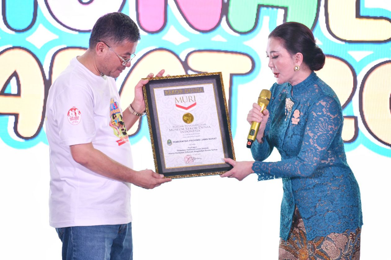 “Alhamdulillah, kami berhasil mencetak rekor MURI melalui kegiatan permainan anak tradisional sambil mengenakan kebaya dan pangsi. Rekor ini melibatkan total 12.000 peserta, terdiri dari 2.600 peserta yang hadir langsung di SOR Arcamanik dan sisanya mengikuti secara daring,” ujar Kepala DP3AKB Jabar, Siska Gerfianti, di Bandung, Minggu (27/7/2025).