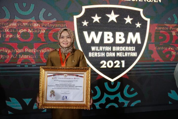 Penghargaan itu diterima langsung Kepala DPMPTSP Jabar Noneng Komara dalam acara Apresiasi dan Penganugerahan Zona Integritas Menuju Wilayah Bebas dari Korupsi (WBK)/Wilayah Birokrasi Bersih dan Melayani (WBBM) Tahun 2021, Senin (20/12/2021).