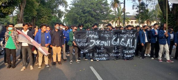 Ratusan mahasiswa yang ikut dalam unjuk rasa tersebut membentangkan spanduk di depan kantor Gubernur Jawa Barat sebagai bentuk kekecewaan dan menilai bahwa Presiden Joko Widodo telah gagal total.