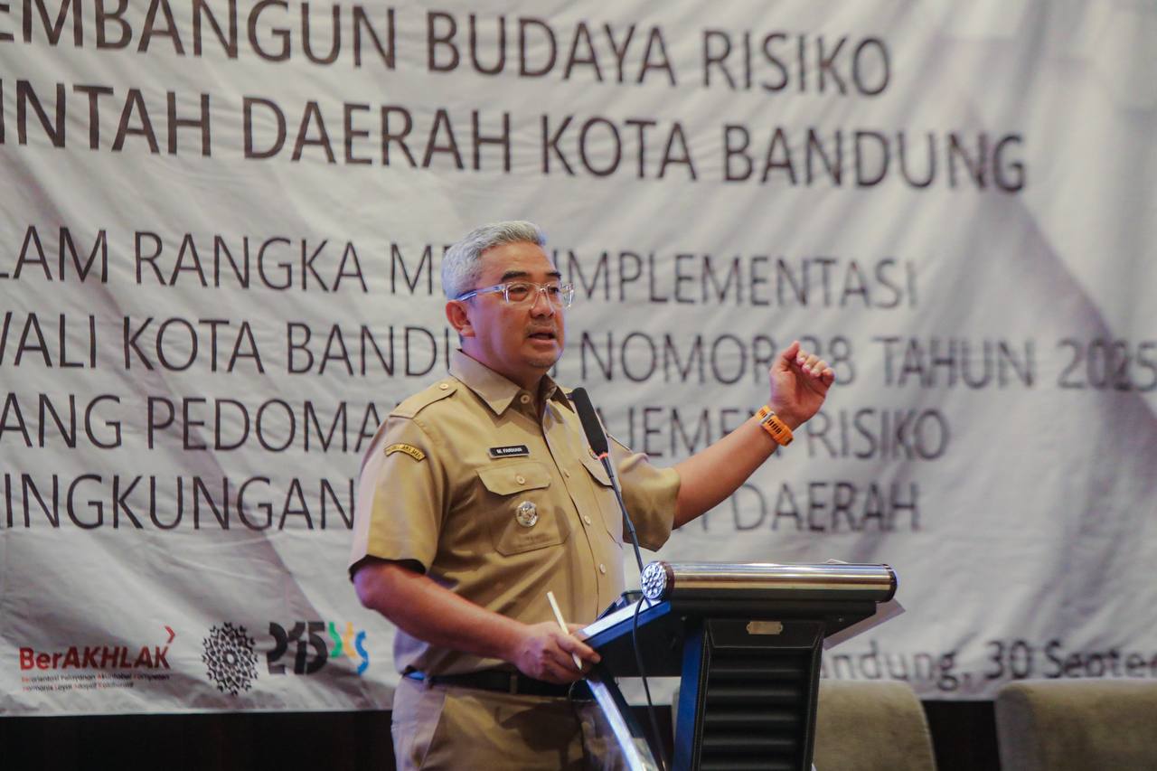 Hal itu ia sampaikan saat membuka Executive Workshop Membangun Budaya Risiko melalui Manajemen Risiko Pemerintah Daerah Kota Bandung di eL Hotel Bandung, Selasa 30 September 2025.