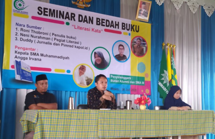 KAPOL.ID–Forum Komunikasi SMA Muhammadiyah Singaparna menyelenggarakan acara bedah buku Literasi Kata, Jumat (24/7/2020). Acara berlangsung di aula SMA Muhammadiyah Singaparna.