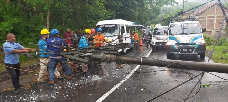 Pohon randu super jumbo menimpa jaringan listrik PLN di jalan provinsi Kp. Citamiang, Desa Sirnaraja, Kec Sukaraja Kabupaten Tasikmalaya, Rabu (10/02/2021).