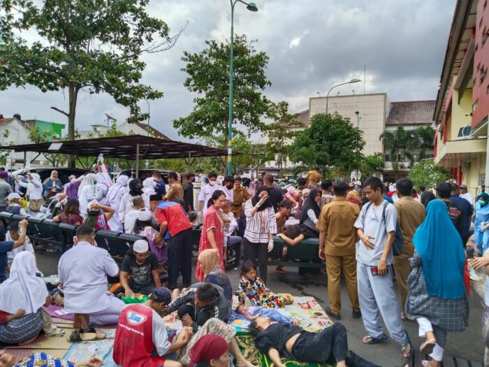 KAPOL.ID – Gempa bumi yang terjadi di wilayah Kabupaten Cianjur, Senin (21/11/2022) siang membuat halaman Rumah Sakit Umum Daerah (RSUD) Sayang Cianjur dipenuhi korban luka dan meninggal.