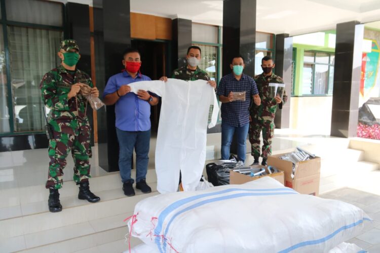 Bantuan dalam bentuk alat pengaman diri didapatkan dari rekan Brigif berupa hazmat suit, masker dan face shield masing-masing 500 pcs, Selasa (5/5/2020).