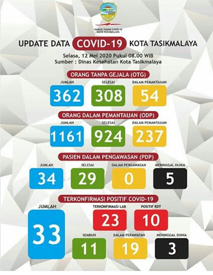 “Hasil Swab-nya baru keluar 11 Mei kemarin untuk yang perempuan. Ia masih tenaga kesehatan,” ujar Kepala Dinas Kesehatan Kota Tasikmalaya, dr. Uus Supangat, Selasa (12/5/2020).