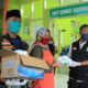 Kepala Desa Sukamukti, Budi Daryanto bersama aparat desa mendampingi tim medis dengan menggunakan APD lengkap untuk melakukan tugasnya.