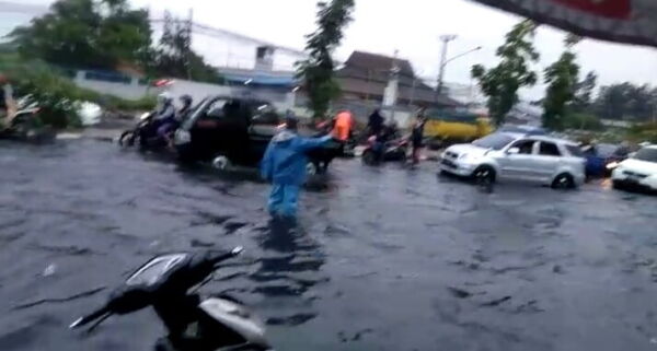 Nanang, warga setempat mengatakan, banjir berdampak terjadinya perlambatan arus lalu lintas dari kedua arah.