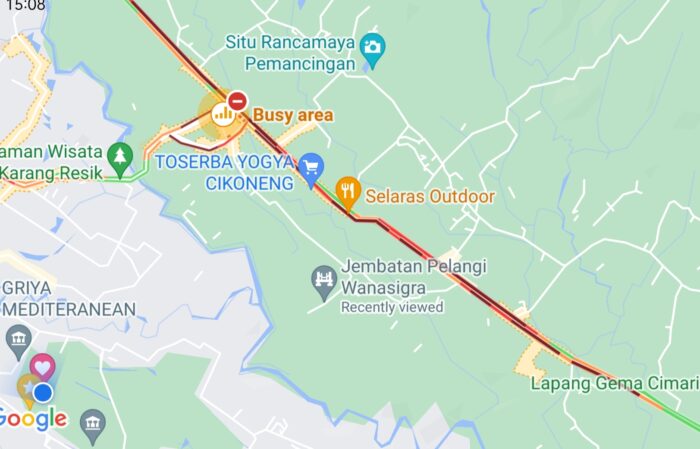 Saat arus lalulintas normal menggunakan mobil, waktu tempuh Cikoneng-Karangresik hanya 5-10 menit. Imbas penutupan dan penyempitan, melar menjadi 30 menit.