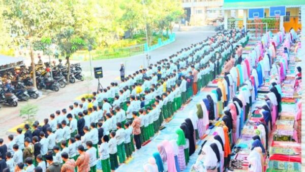 “Foto ini sekitar 800 siswa sedang salat duha berjamaah di lapangan sekolah. Intinya di hari anak internasional ini, kita ingin membekali anak didik bukan dengan pengetahuan akademiknya saja, tapi penanaman agama dan akhlak dalam menyiapkan masa keemasan Indonesia nanti,” ujar Guru Kelas VI, Anis Ali Hanjar, S.Pd.I ketika dihubungi KAPOL.