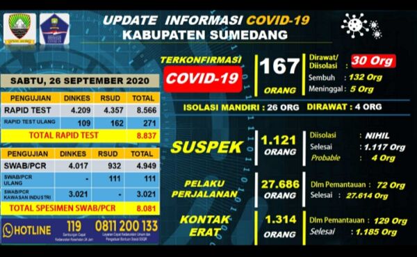 KANALInfo Covid-19 Kabupaten Sumedang per 26 September 2020KAPOL.ID0 min baca26 September 202017 Juli 2021×Info Covid-19 Kabupaten Sumedang per 26 September 2020Sebarkan artikel ini TerkaitBIROKRASIPupuk Empati di Bulan Suci: SMPN 1 Conggeang Tutup Pesantren Kilat dengan Aksi “Nesco Berbagi” Ratusan bingkisan menyebarBIROKRASIWujudkan Mudik yang Teduh, Sinergitas Lintas Sektor di Sumedang Siap Amankan Lebaran 1447 HBIROKRASIDari Ajudan hingga Kepala Dinas: Meneladani Langkah ‘Pok Pek Prak’ Ayuh Hidayat di SumedangBIROKRASIDua Camat “Naik Kelas”, Bupati Dony Ahmad Munir Lantik Tiga Pimpinan Tinggi Pratama SumedangBIROKRASISinergi “Empat Pilar” Ubah Lahan Tidur Desa Genereh Jadi Lumbung Jagung Hibrida Standar BulogBISNISDilema “Emas Kuning” Nangerang: Perjuangan Pak Rosadi Menopang Jutaan Bebek di Tengah Jeratan Biaya Pakan