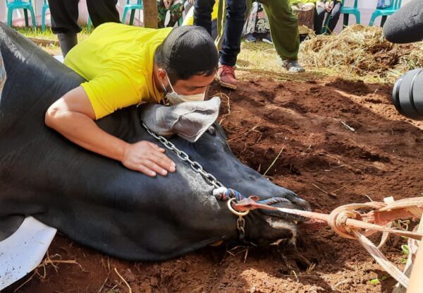 “Si Grandong, nama sapi peliharaan saya beratnya 1,3 Ton. Sekarang, diserahkan kepada warga di Hari Raya Iduladha 2021,” ujar Irfan.